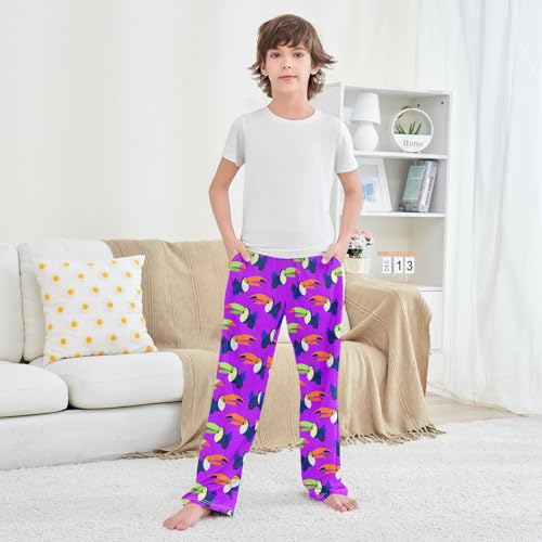 HOT ! Wild Parrot Boys Long Pants Soft Trousers Elastic Waist Kids Lounge Bottoms with Pockets S-XL