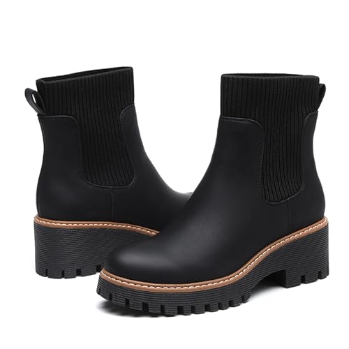 TYNDALL Women's Platform Chelsea Boots Fashion Shoes Meets Comfort Elastic Detail Ankle Heel Lug Sole Chunky Booties 6