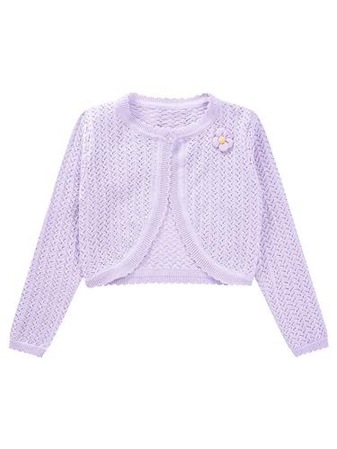 Kids Flower Girls Princess Bolero Shrug Cute Flower One Button Knit Cardigan Sweaters Dress Cover Up Knitwear 6