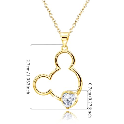 Gold Cute Necklace for Girls Teens Women - Sterling Silver Hypoallergenic Cubic Zirconia Mouse Pendant Necklace Adjustable Dainty Lovely Necklace Fashion Jewelry Adorable Gifts for Christmas Daughter 1