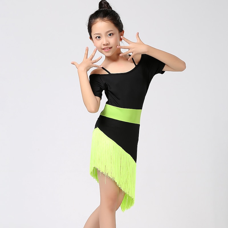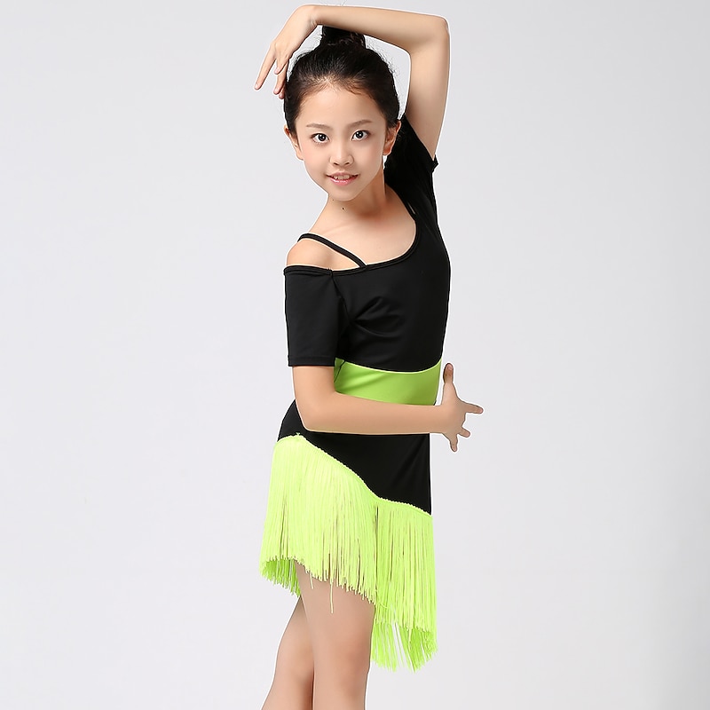 $35.99 - Latin Dance Kids' Dancewear Dress Tassel Splicing Girls' Performance Training Short Sleeve High Cotton Blend 2025. Shop for cheap Practice Dresses online? Buy at lightinthebox.com on sale today!
