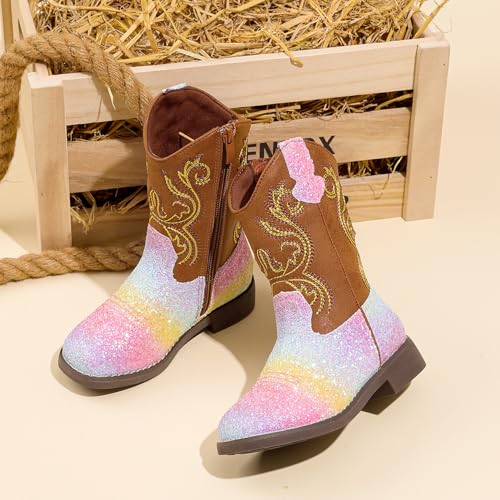 kkdom Cowgirl Boots Cowboy Boots For Girls Boys Kids Fashion Glitter Square Toe Western Boots 7