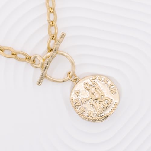 Chunky Coin Antique Gold Plated Thick Link Chain Layered Pendant Necklace for Women 18 Inch Trendy Toggle Chain Necklace Gift for Women 7