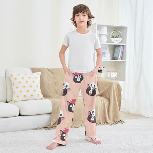 trending ! Black Cat Skull Boys Pants Boys Athletic Pants Long Pant for Boywith Pockets Wide-Leg Size 6-14Y