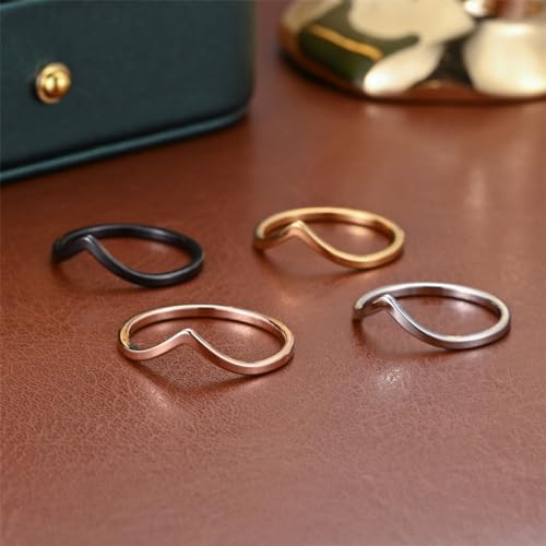 CCBFY Stainless Steel V Shaped Wedding Band Engagement Promise Ring for Women Pointed Chevron Classical Simple Plain Statement Ring 4