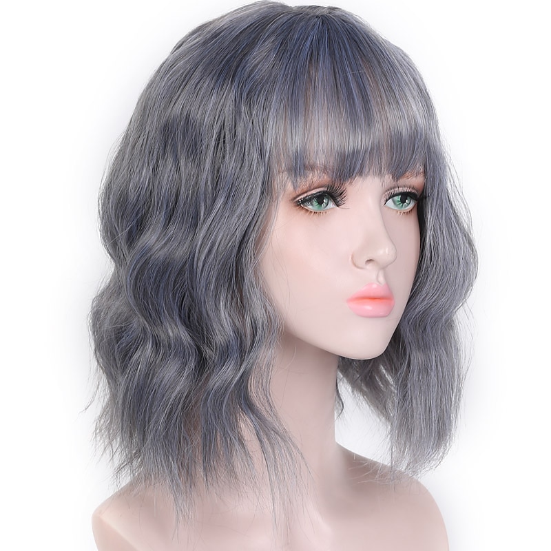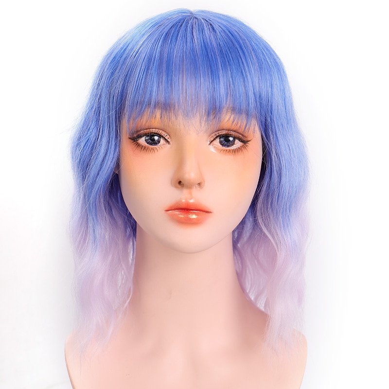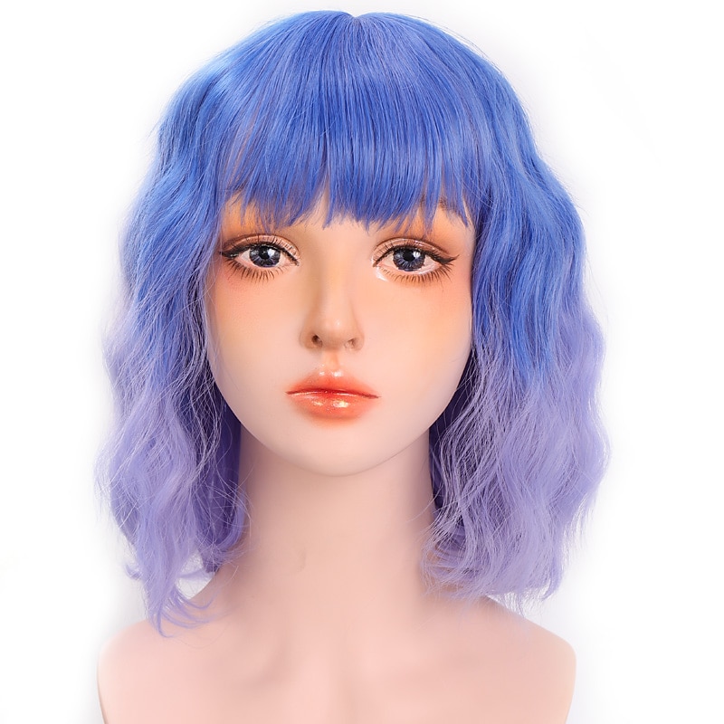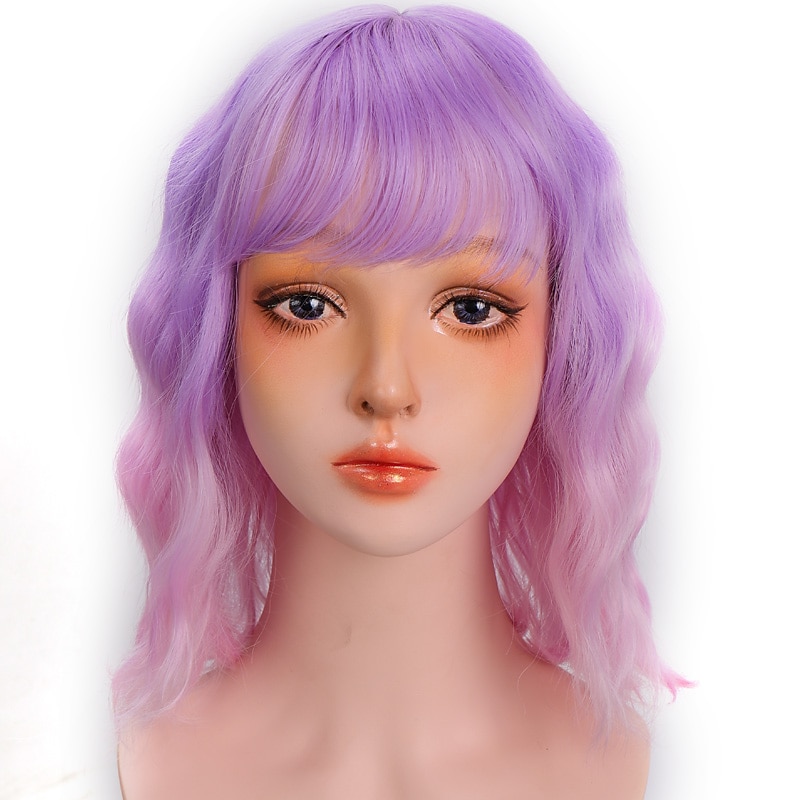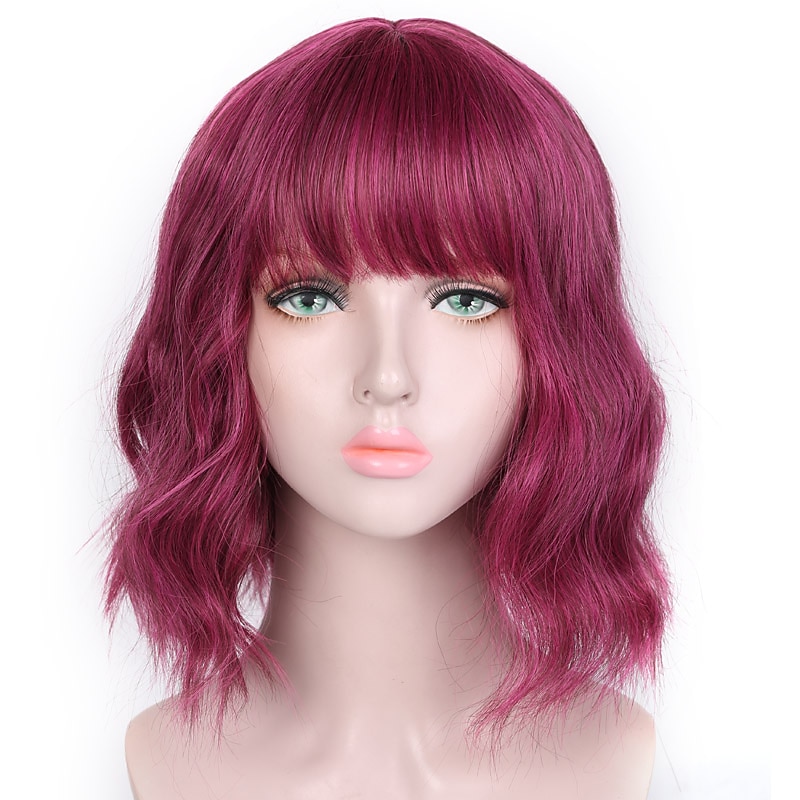 HOT ! Pink Wigs for Women Synthetic Wig Deep Wave Neat Bang Wig Pink Short A1 A2 A3 A4 A5 Synthetic Hair Women's Cosplay Party Fashion Pink Purple Halloween Wigs