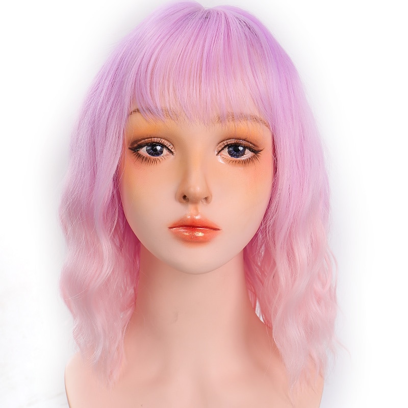More information about Pink Wigs for Women Synthetic Wig Deep Wave Neat Bang Wig Pink Short A1 A2 A3 A4 A5 Synthetic Hair Women's Cosplay Party Fashion Pink Purple Halloween Wigs