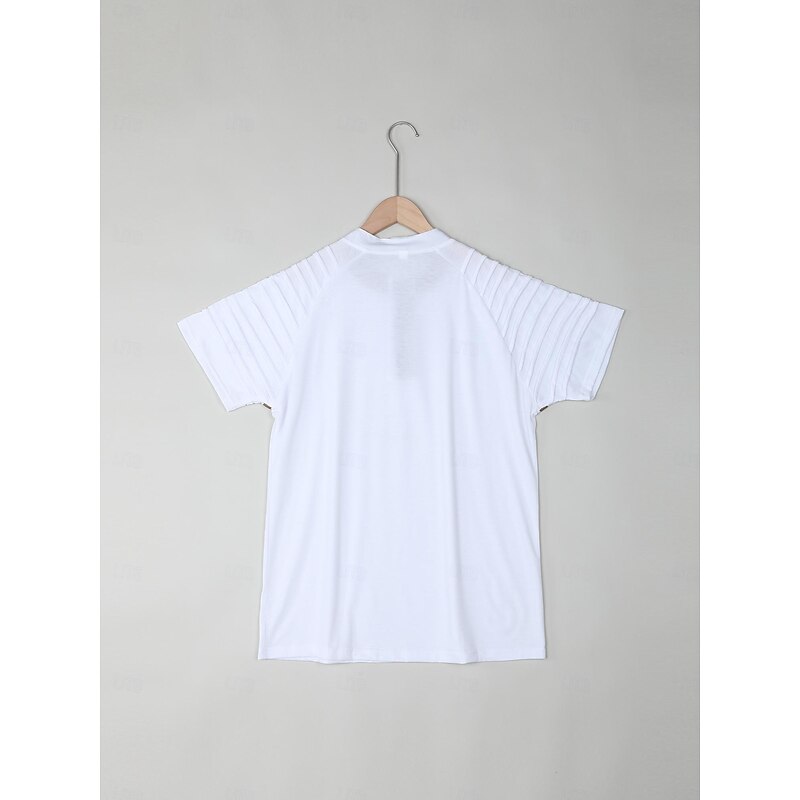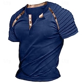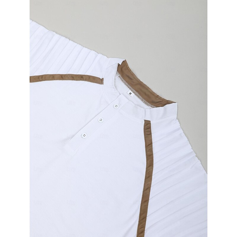 More information about Men's Henley Shirt Raglan T Shirt Short Sleeve Plain Slim Pleated Fashion Designer Casual Patchwork Pleats Henley Outdoor Vacation Daily Summer White Navy Blue Dark Gray Henley T-Shirt