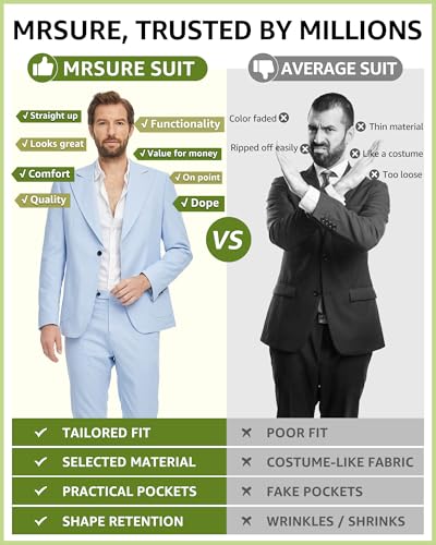 • MrSure - Stay Handsome, Stay Sure: The linen jacket features 3 practical pockets and 2 inner storage pockets. The oversized notch lapel enhances the collar. The pants are designed with 4 practical pockets, perfect for everyday use