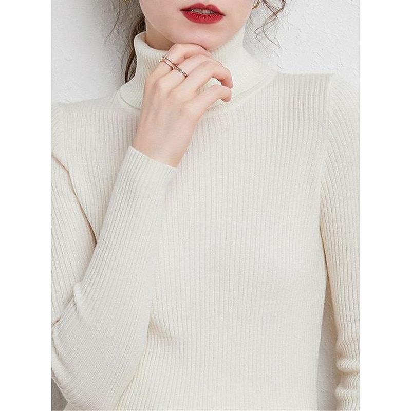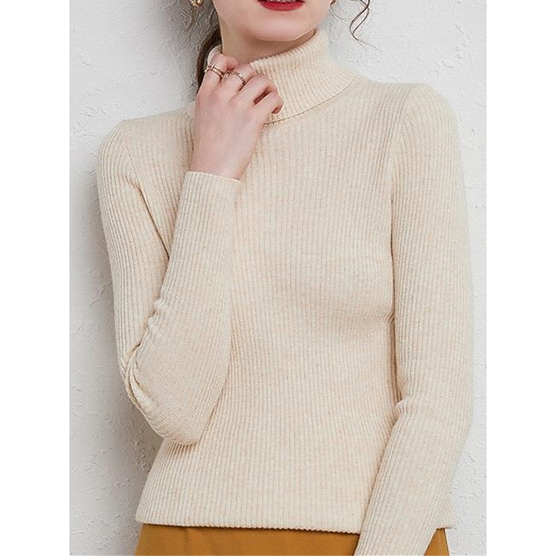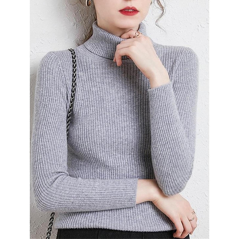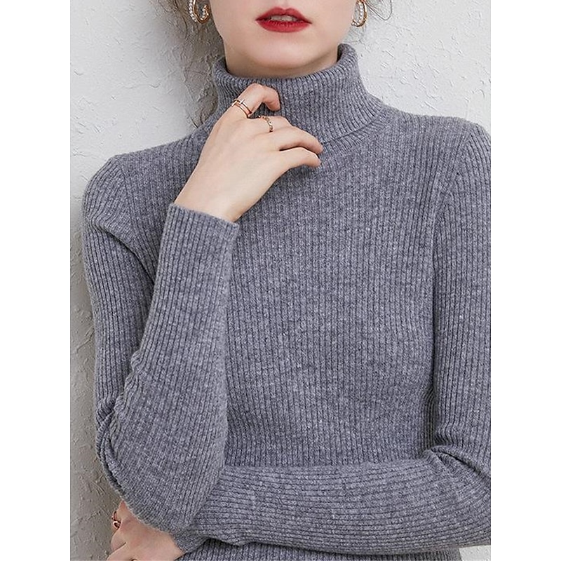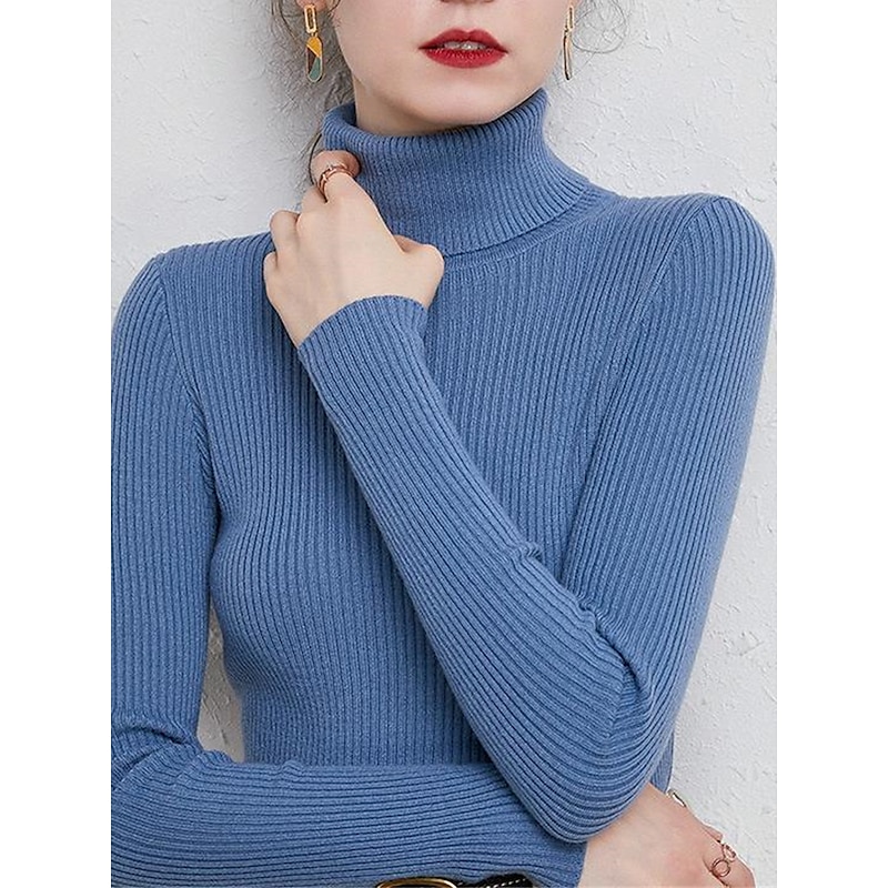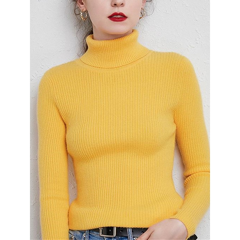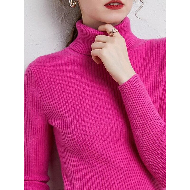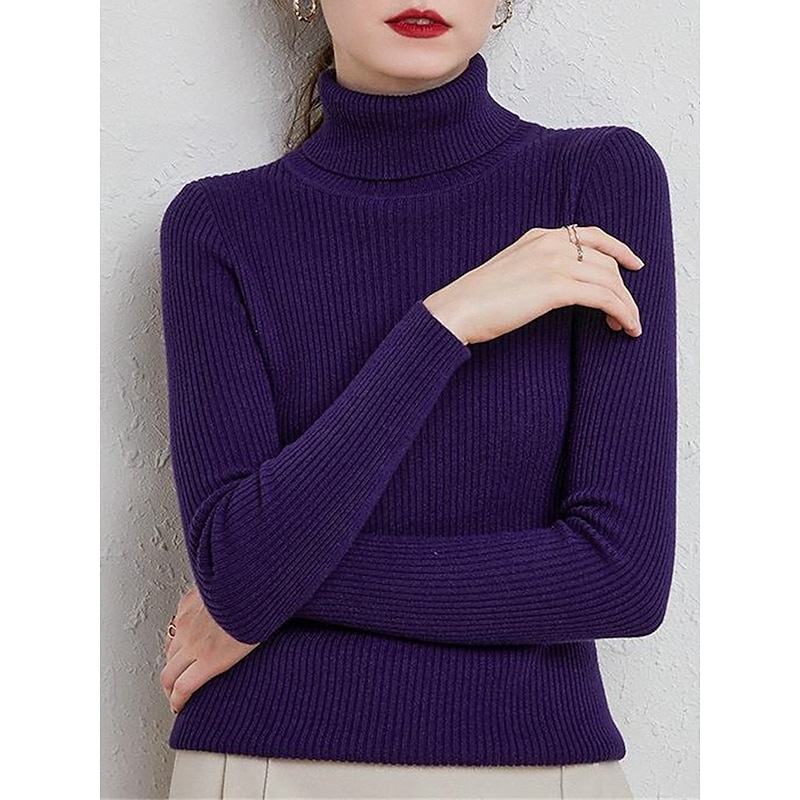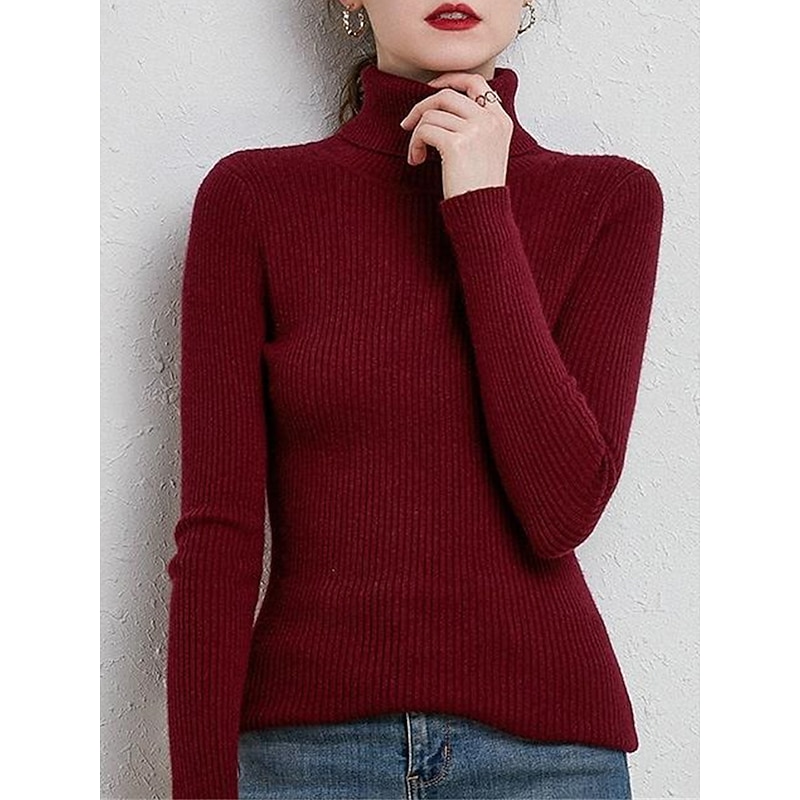 Women's Pullover Sweater Jumper Stylish Casual Soft Solid Color Ribbed Turtleneck Oversized Long Sleeve Knit Daily Holiday Going out Rust Red Pink purple Fall Winter 22
