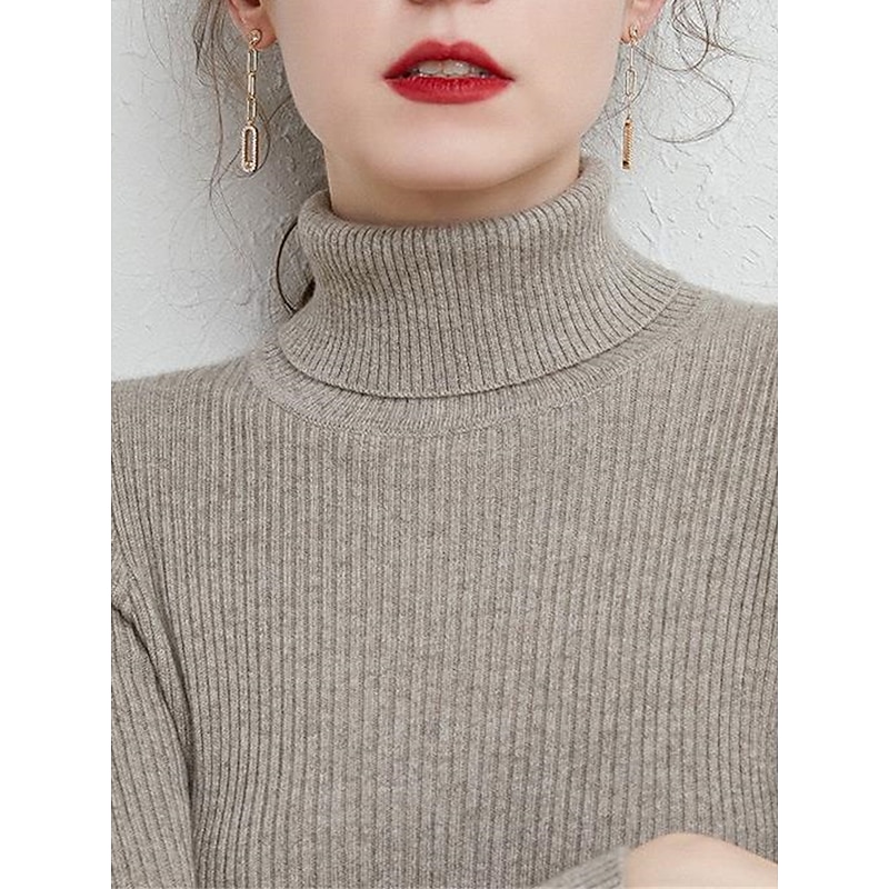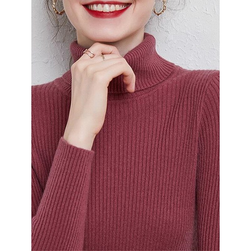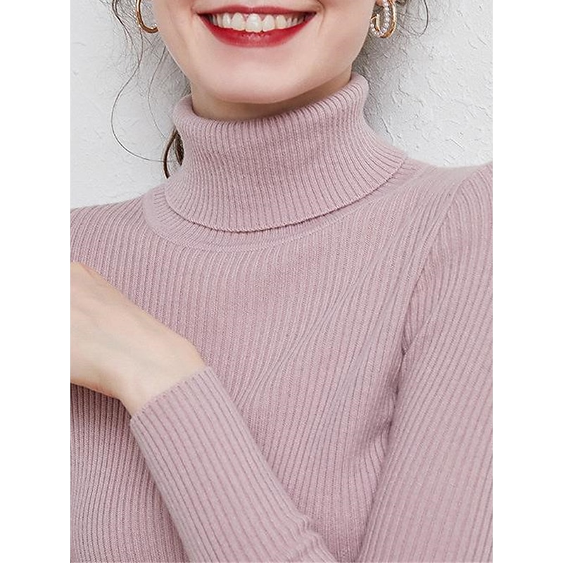 More information about Women's Pullover Sweater Jumper Stylish Casual Soft Solid Color Ribbed Turtleneck Oversized Long Sleeve Knit Daily Holiday Going out Rust Red Pink purple Fall Winter