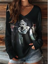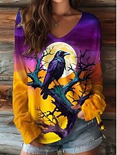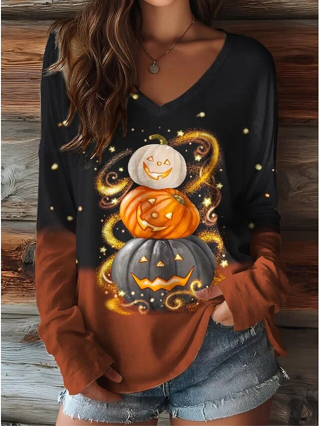 More information about Halloween Women's T shirt Pumpkin Graphic Elegant Vintage Stylish Long Sleeve V Neck Regular Tops Daily Going out Weekend Print Black Purple Orange Brown Spring Fall