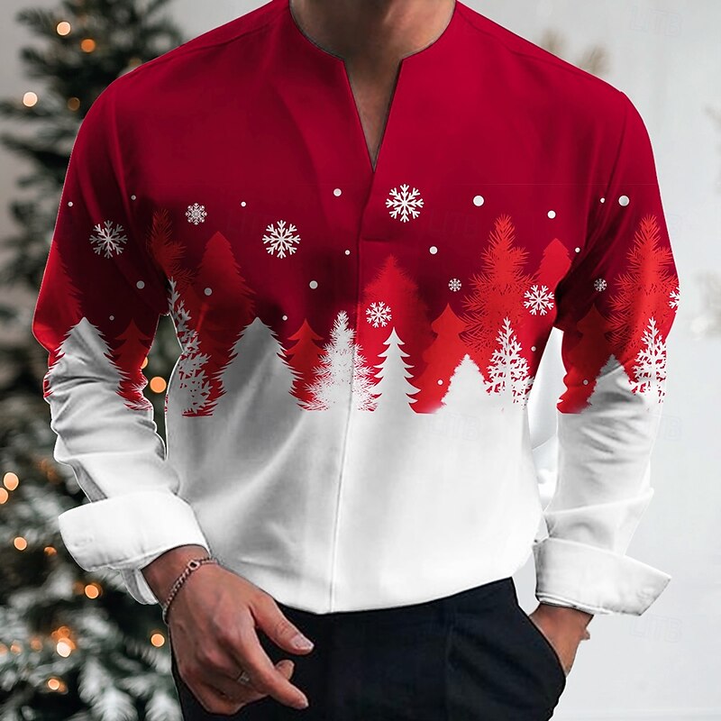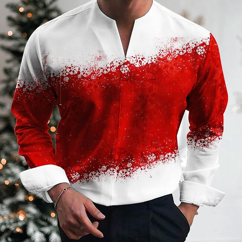 More information about Christmas Men's Tartan Snowflake Shirt Long Sleeve Casual Party Daily Festival Summer Spring Fall V Neck Print Dark Red White Red Blue Green