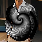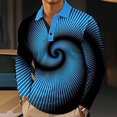 More information about Men's Visual Deception Polo Shirts Golf Polos Shirts Long Sleeve Polo Shirts Collar Business Casual Outdoor Vacation Dailywear Buttons 3D Print Spring Fall Winter Black Blue