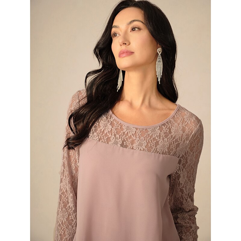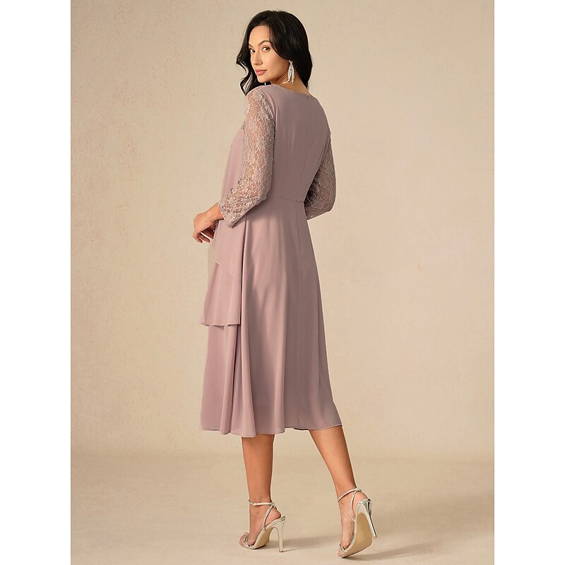 More information about Women's Tea Length Lace Dress Party Dress Cocktail Dress Wedding Guest Dress Elegant Party Vacation Wedding Guest Cocktail Party Regular Fit Solid Color 3/4 Length Sleeve Crew Neck Dusty Rose Spring