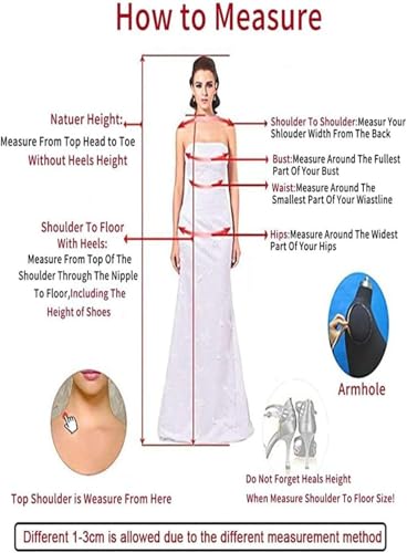 • Size: Please refer to the left SIZE CHART before purchasing and DO NOT follow your usual size. For customization, please send us your detailed size info including bust/waist/hips/head to floor with your shoe heels.