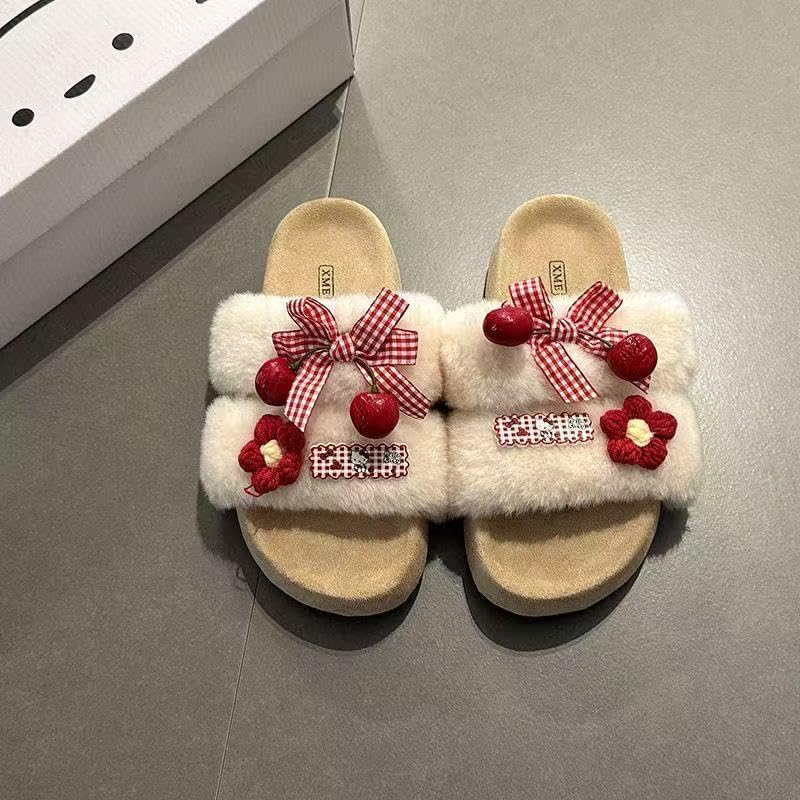 More information about ZQW Plush Fuzzy Cartoon Slippers Y2K Bow Floral Chunky Platform Slides Non-Slip Comfortable Casual Dressy Shoes for Women