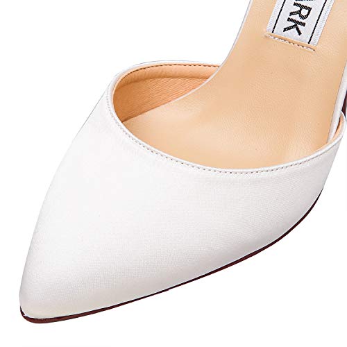 ELEGANTPARK Heels for Women Pointed Toe High Heel Pumps Satin Ankle Strap Wedding Bridal Evening Party Dress Shoes 7