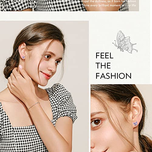 TOPBRIGHT 8 Pairs Hypoallergenic Earrings 925 Sterling Silver Stud Earrings Heart CZ Tiny Butterfly For Kids, Toddlers, Little Girls, Teens, Women 5
