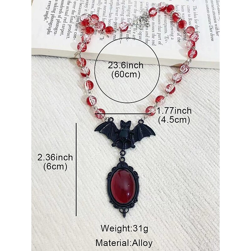 Women's Halloween Gothic Bat Necklace with Red Gem Pendant, Vintage Vampire Choker Jewelry for Costume Parties and Cosplay 17