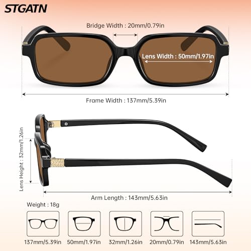• 【STURDY METAL HINGE 】Structured STGATN sunglasses for women with sturdy metal hinge and plastic, open and close smoothly. The Arm made with metal logo, premium texture, not easy to peel off. These vintage y2k oval frame and square frame particularly lightweight yet durable, very comfortable on the bridge of your nose, no sliding, and no pressure behind ears. These design ingenuities will make us more unique and fashionable!