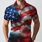 HOT ! Men's American Flag Independence Day Patriotic Shirt Casual Shirt Button Up Shirt Short Sleeve Army Militray Outdoor Vacation Streetwear Summer Spring Turndown 3D Print Collared Shirts Red