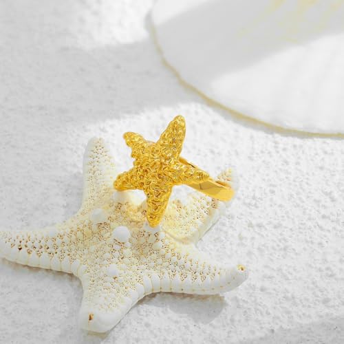 • Versatile Sea Star Stackable Rings: Vintage lucky star rings can be worn with different outfits. You can wear this unique gold starfish ring on its own, or stack it with other rings to exude brilliance and personality.