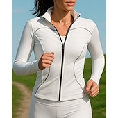 More information about Women's Running Jacket Outdoor Jacket Full Zip Slim Long Sleeve Outerwear Athletic Solid Colored Quick Dry Lightweight Elastic Breathable Tennis Golf Running Sportswear Activewear Black White Red