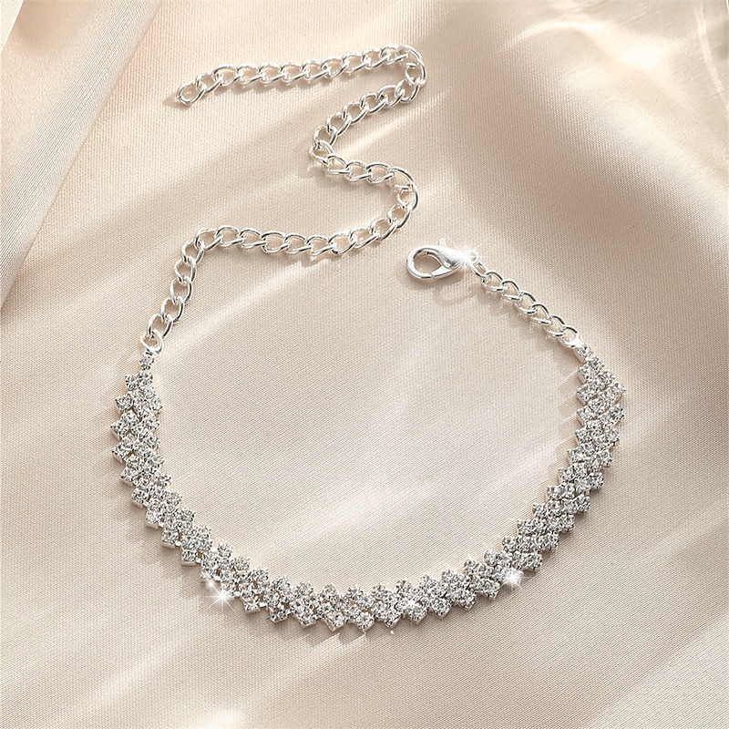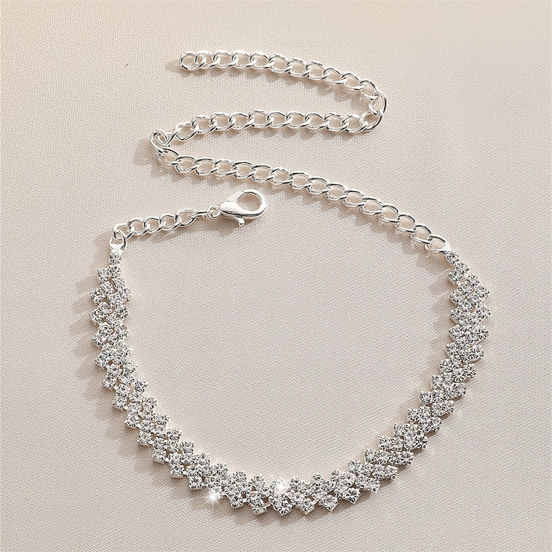 Highlights [Fabric]: Crafted from high-quality rhinestones and iron, this anklet features shimmering faux diamonds that mimic the brilliance of natural stones. These durable materials ensure the anklet's longevity and tarnish resistance, providing a lasting shine. [Fit]: Designed with an adjustable fit, the anklet wraps comfortably around the ankle, allowing for secure positioning without discomfort, perfect for long hours of wear during any occasion. [Design Highlights]: The anklet showcases a sophisticated line of intricately set rhinestones, offering a continuous flow of sparkle. Its classic and artistic design imbues a personalized touch, making it a standout piece for adding elegance to any attire. [Occasions]: Ideal for a range of settings, from formal dates to casual beach outings. Whether you’re dressing up for a special occasion or looking to add a hint of luxury to a day at the beach, this anklet complements any event seamlessly. [Size Range]: The adjustable nature of the anklet accommodates various ankle sizes, making it versatile and suitable for a wide range of wearers.