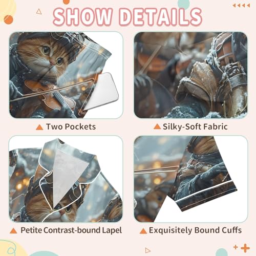 More information about ALAZA Cat Violin Music Satin Pajamas Set Short Sleeve Button Down Sleepwear Summer Pjs 2 Piece