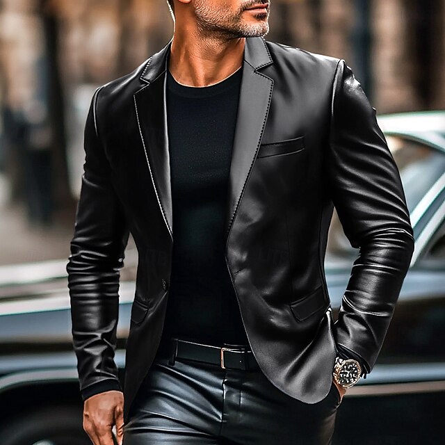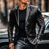 More information about Men's Blazer Office Work Street Pocket Fashion Casual Spring & Fall Polyurethane Polyester Plain Pocket Casual / Daily Single Breasted Blazer Black