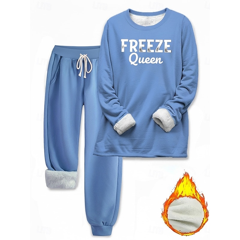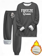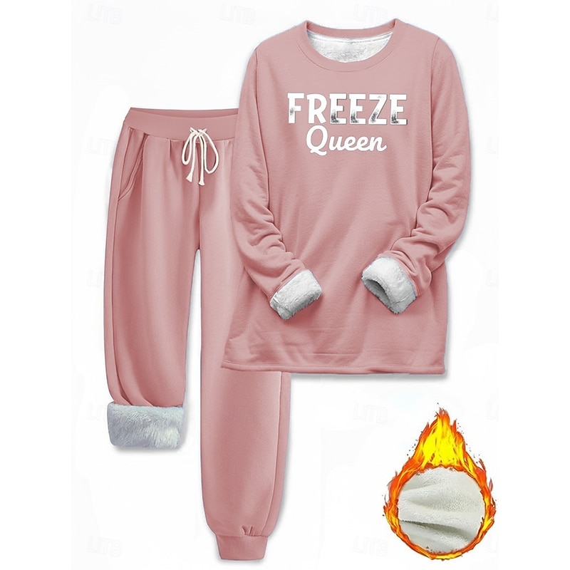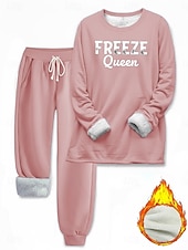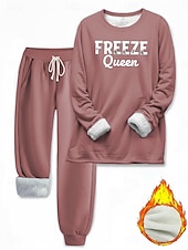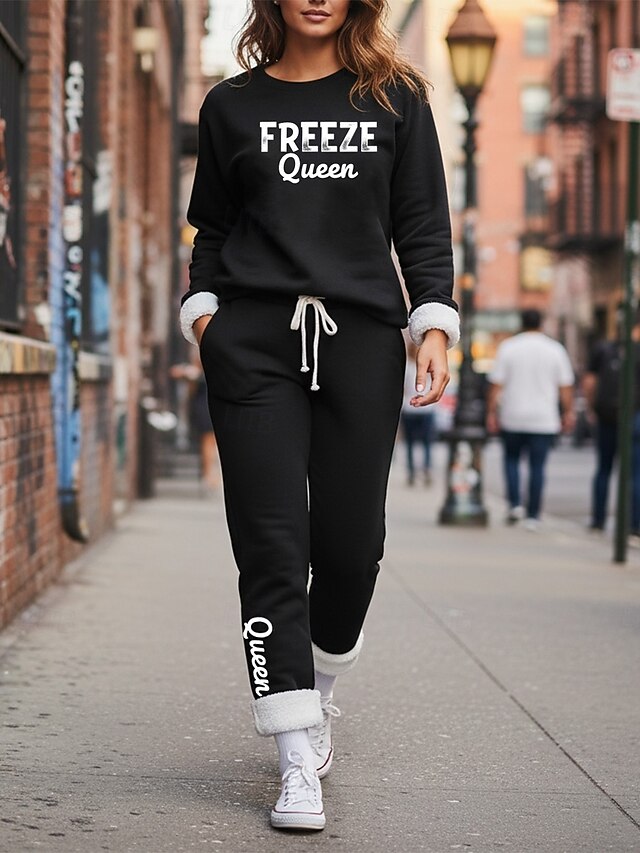 More information about Women's Elegant Warm Fashion Two Piece Sets Tracksuit Pants Sets Long Sleeve Bishop Sleeve Crew Neck Letter Print Outdoor Vacation Daily Black Pink Dark Pink Spring Regular Fit