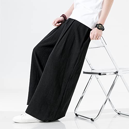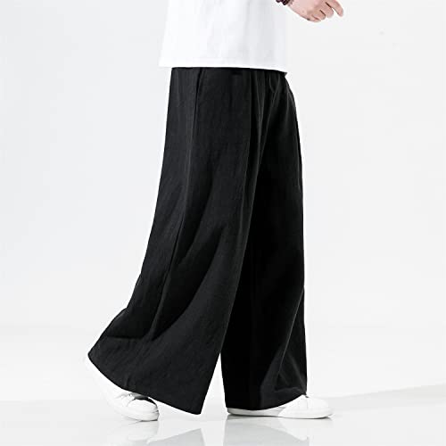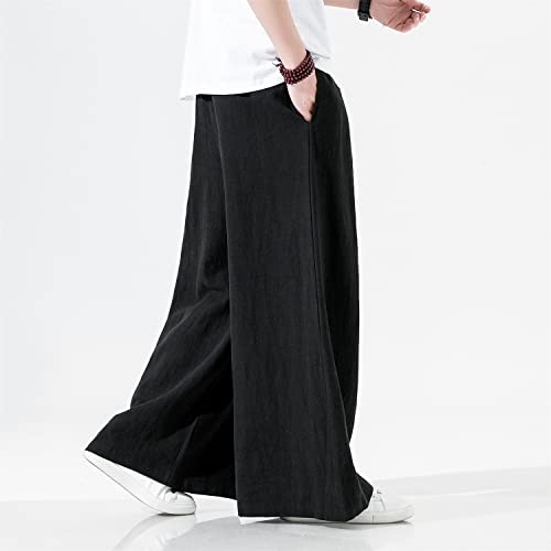HOT ! Seidarise Men's Linen Pants Straight Baggy Wide Leg Stretch Elastic Waist Drawstring Relaxed Fit Trousers Pant