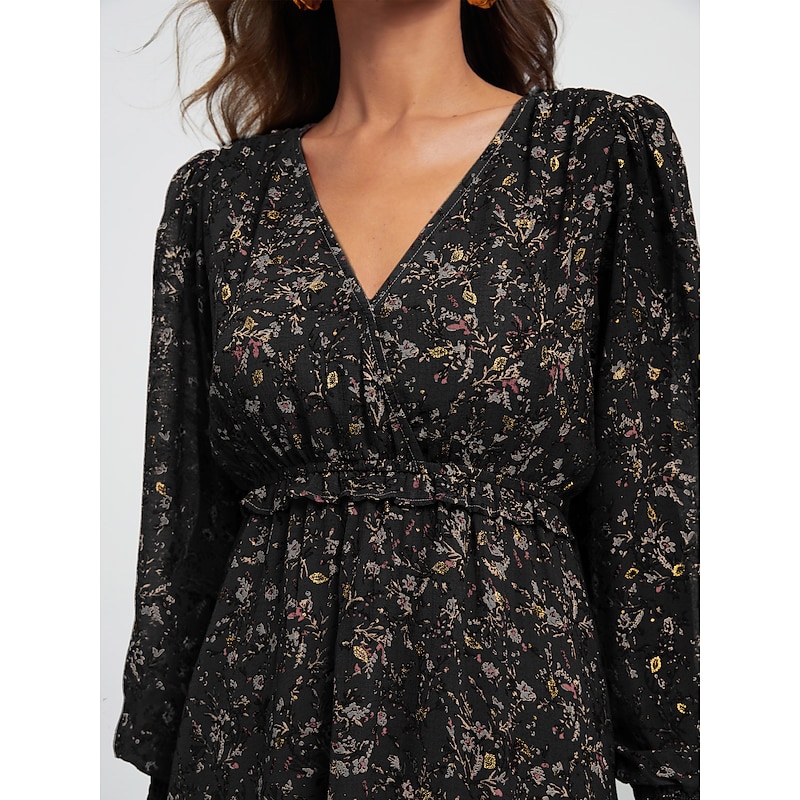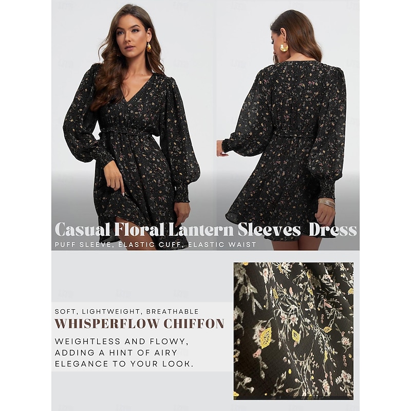 Highlights - Perfect for fall and winter seasons - Made of lightweight chiffon fabric - Features long sleeves and V-neckline - Designed with ruffle details and ditsy floral print - Loose fit for a comfortable wear - Ideal for casual occasions and vacations - Trendy lantern sleeves and mini dress length - A stylish and feminine addition to any wardrobe
