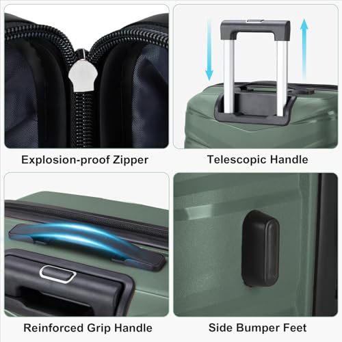 V-shaped stripes 3-in-1 PP trolley case 20in 24in 28in PP iron trolley classic color - dark green (grain pattern) 3