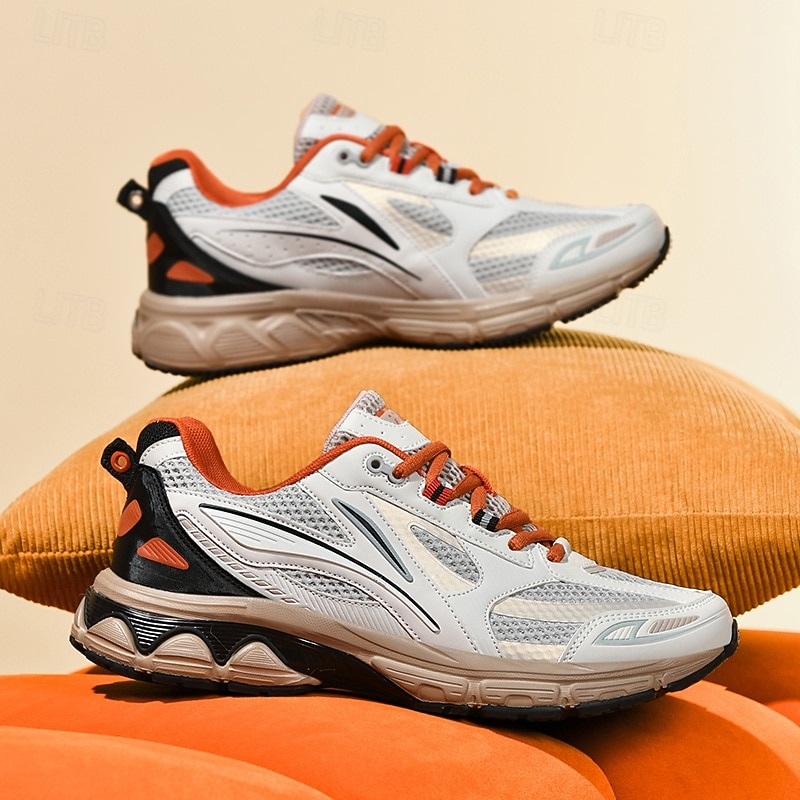 HOT ! Men's White and Orange Running Sneakers with Lightweight Mesh – Versatile Sneakers for Basketball and Daily Wear