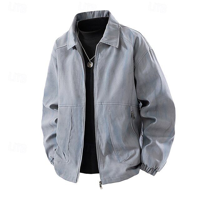 More information about Men's Jacket Casual Jacket Outdoor Vacation Warm Zipper Pocket Fall Winter Plain Fashion Streetwear Standing Collar Regular Dark Gray Black Khaki Jacket