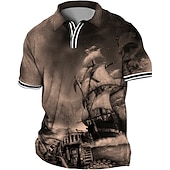 Highlights [Fabric] : Crafted from a soft and breathable cotton blend, this men's polo shirt offers comfort and ease ideal for both spring and summer. The high-quality fabric ensures a relaxed fit without compromising on style, making it a versatile addition to your wardrobe. [Fit] : The tailored fit provides a contemporary silhouette that complements various body types. Available in plus sizes ranging from XL to 6XL, it guarantees a flattering look for men of all shapes and sizes. [Design Highlights] : Featuring a sophisticated black and white graphic print of a majestic ship, this polo shirt embraces a nautical theme that captivates attention. The traditional turndown collar with a button-up placket adds a touch of classic elegance, further accentuated by the contrasting white trim on the cuffs and collar. [Occasions] : Perfect for casual outings, vacations, and daily wear, this polo shirt brings a unique artistic flair to any ensemble. Whether it’s a day out on the streets or an outdoor gathering, this shirt blends designer appeal with everyday functionality. [Size Range] : This stylish polo shirt is available in sizes XL through 6XL, catering to a wide range of body types and ensuring a comfortable and flattering fit for big and tall men.