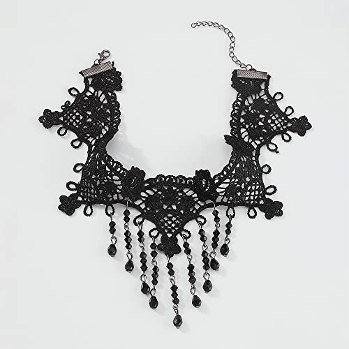 Asphire Gothic Lace Choker Necklace Black Crystal Tassel Collar Necklace Sexy Women's Costume Party Vintage Thick Choker 6