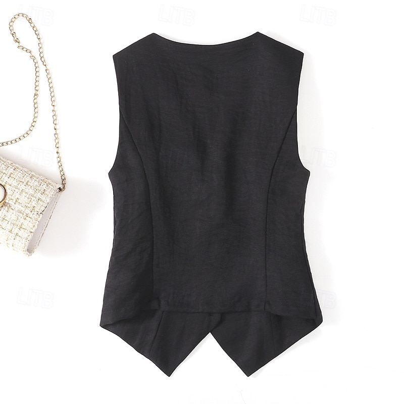 More information about Women's Cotton Linen Vest Plain Active Modern Sleeveless V Neck Regular Tops Daily Going out Buttons Black Beige Summer
