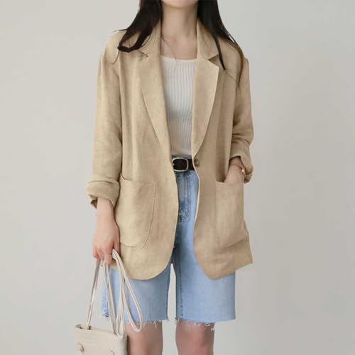 chouyatou Women's Business Casual Blazer Cotton Linen Office Loose Fit Notch Neck Open Front Jacket Coat 1