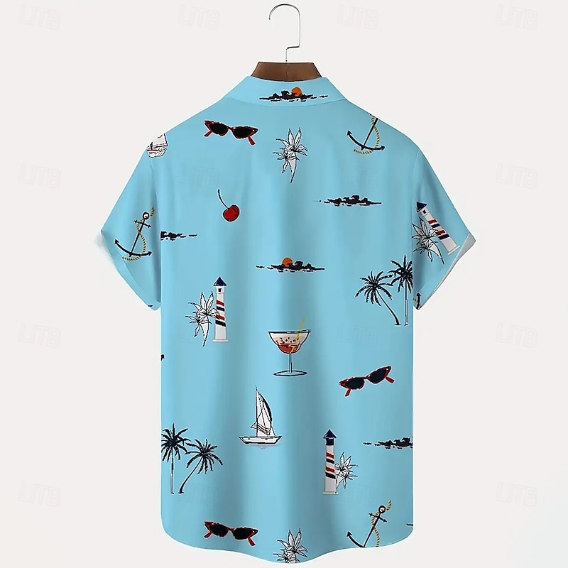Men's Coconut Tree Tropical Plants Summer Hawaiian Shirt Button Up Shirt Aloha Shirt Short Sleeve Hawaiian Resort Vacation Holiday Beach Wear Summer Spring Turndown Collared Shirts Black White Blue 7