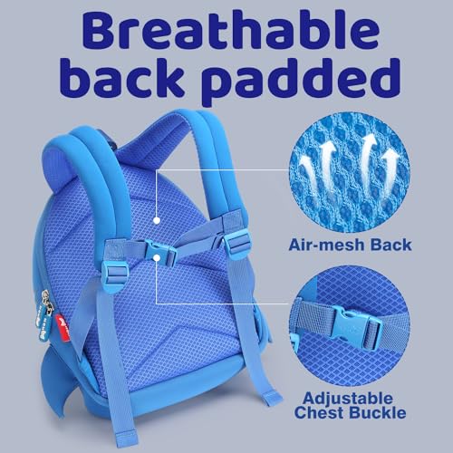 • 🦈【Super Lightweight & Nice Capacity】This cute shark backpack is 0.77lbs, lightweight as an apple, which is perfect for your kids when going to the zoo, playing at the park, going to kindergarten, traveling and any other outdoor activitie for all day. Meanwhile, children goods such as napkins, snack, books and feeding bottles can be loaded together, it's very easy to find the kids stuff.