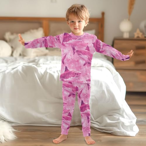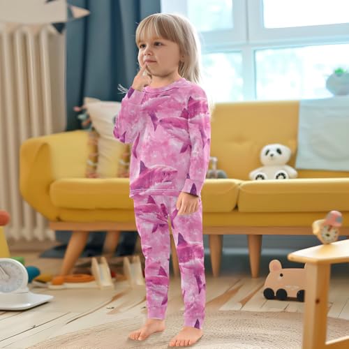 Pajama Sets Long Sleeve Pink Sharks Swimming Together Soft Comfy Sleepwear 2 Piece PJS 3-8T 2