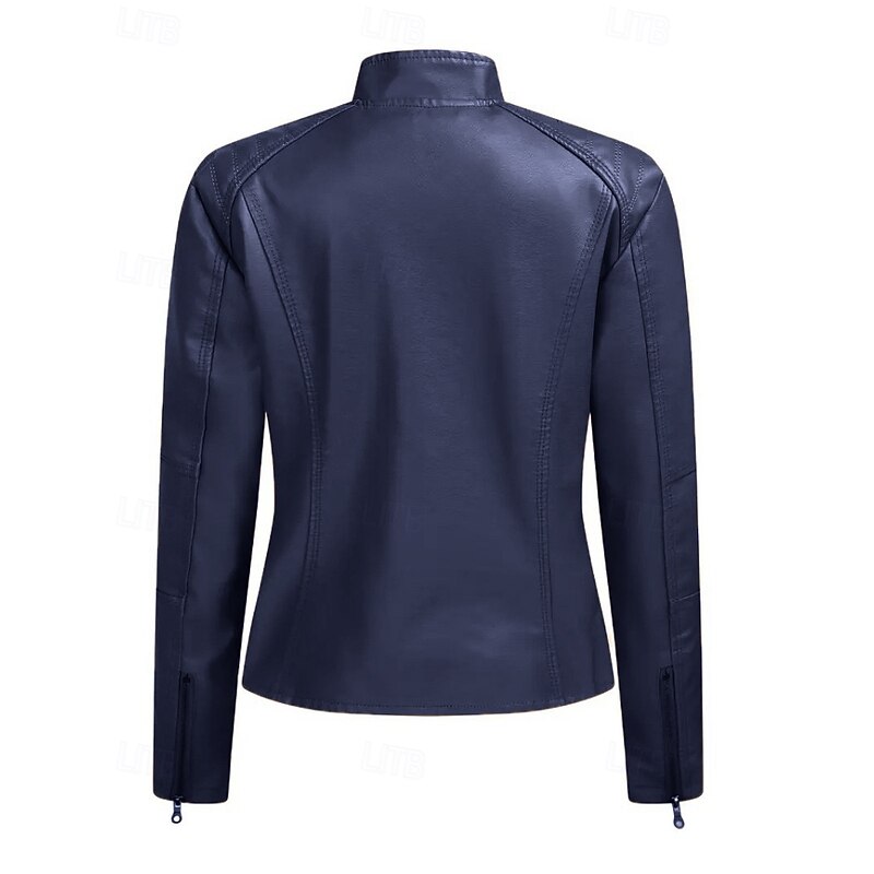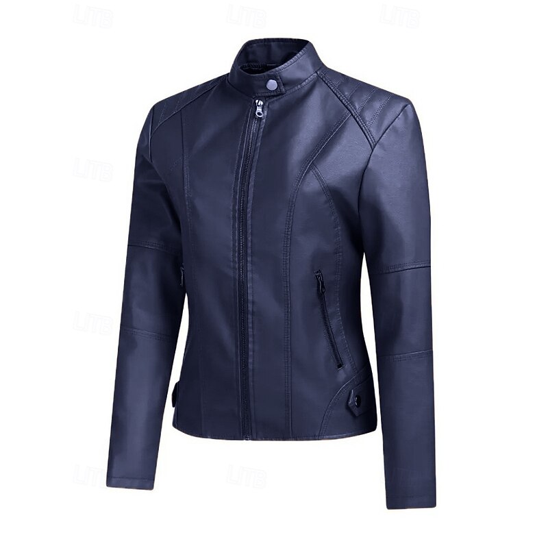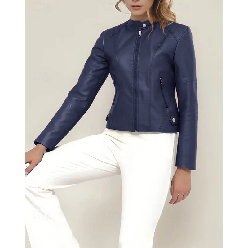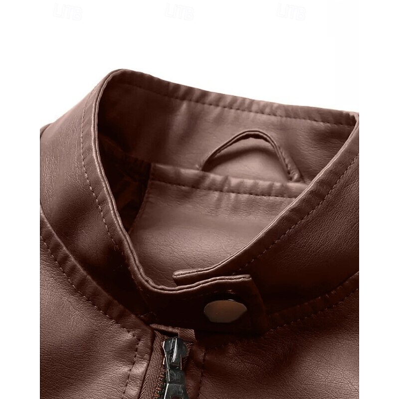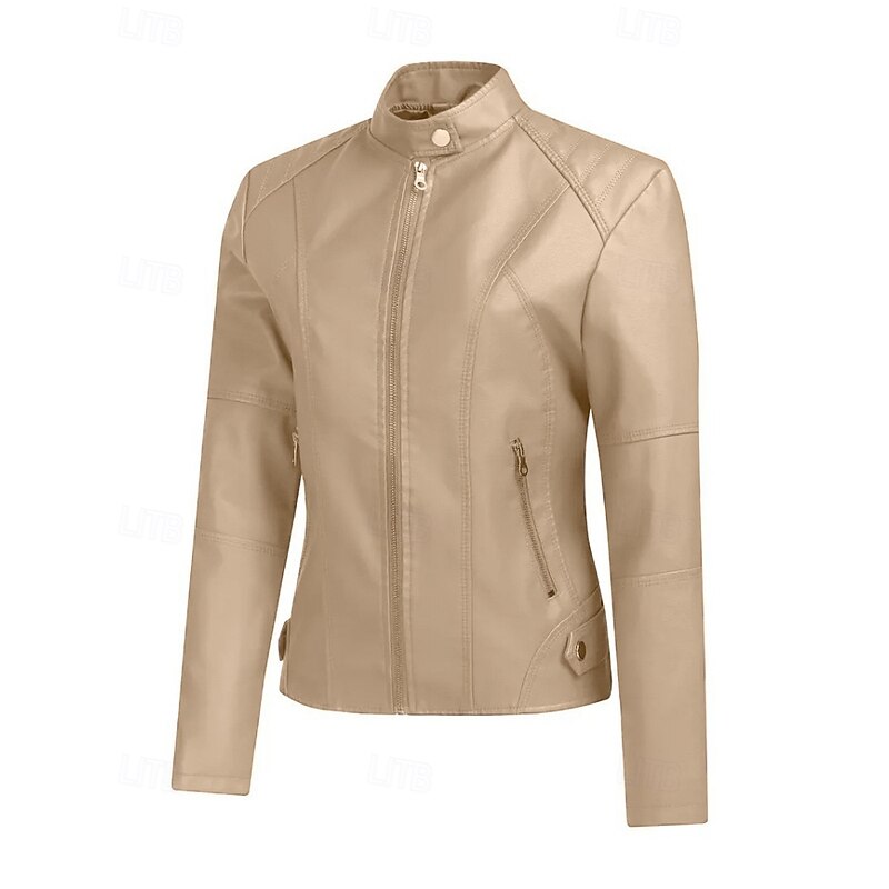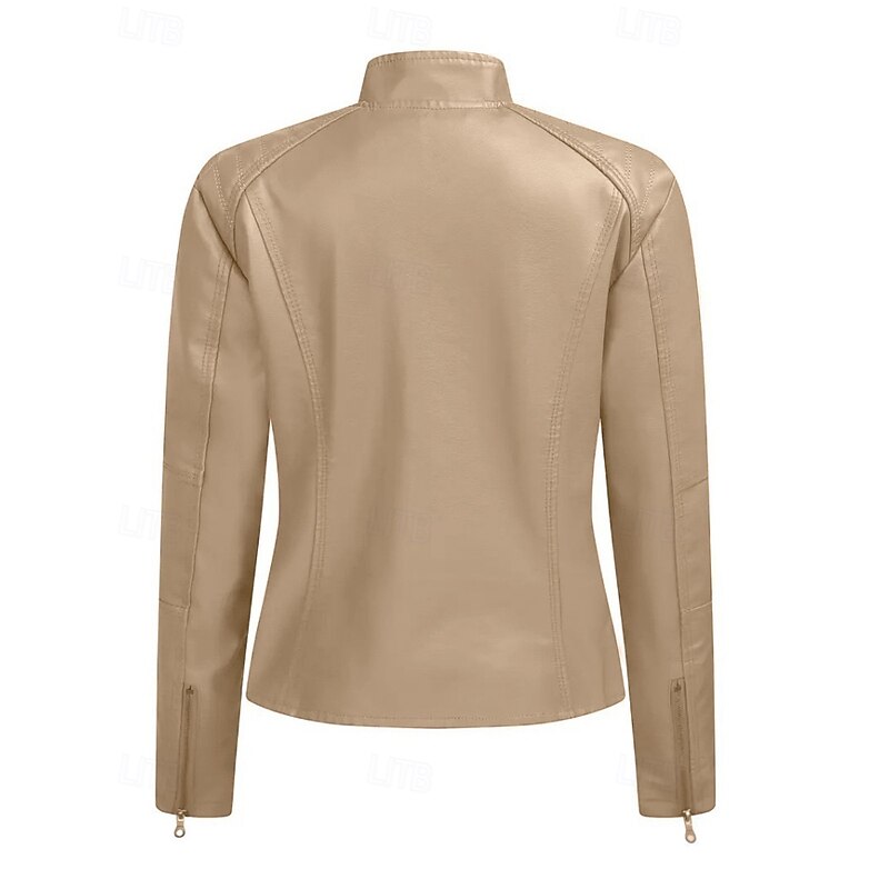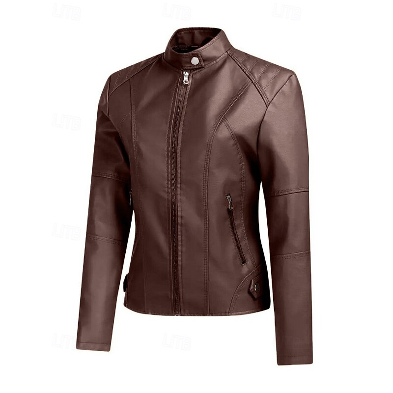 More information about Women's Faux Leather Jacket Comfortable Zipper Pocket Casual Plaid Vacation Going out Weekend Short Stand Collar Regular Fit Long Sleeve Outerwear Black Red Camel Fall Winter