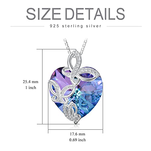 • ❤ Butterfly Necklace Size ❤ Butterfly Pendant size 1.19 inches * 0.85 inches. Butterfly pendant with Purple Heart Crystal, with 18+2inch chains. Butterfly necklace for women.