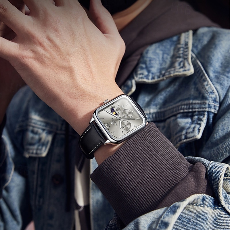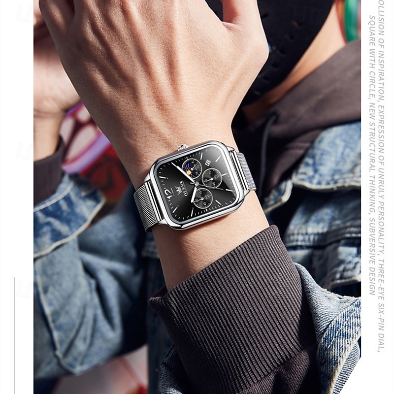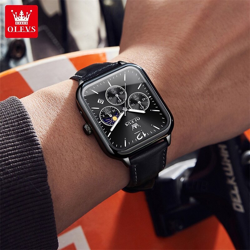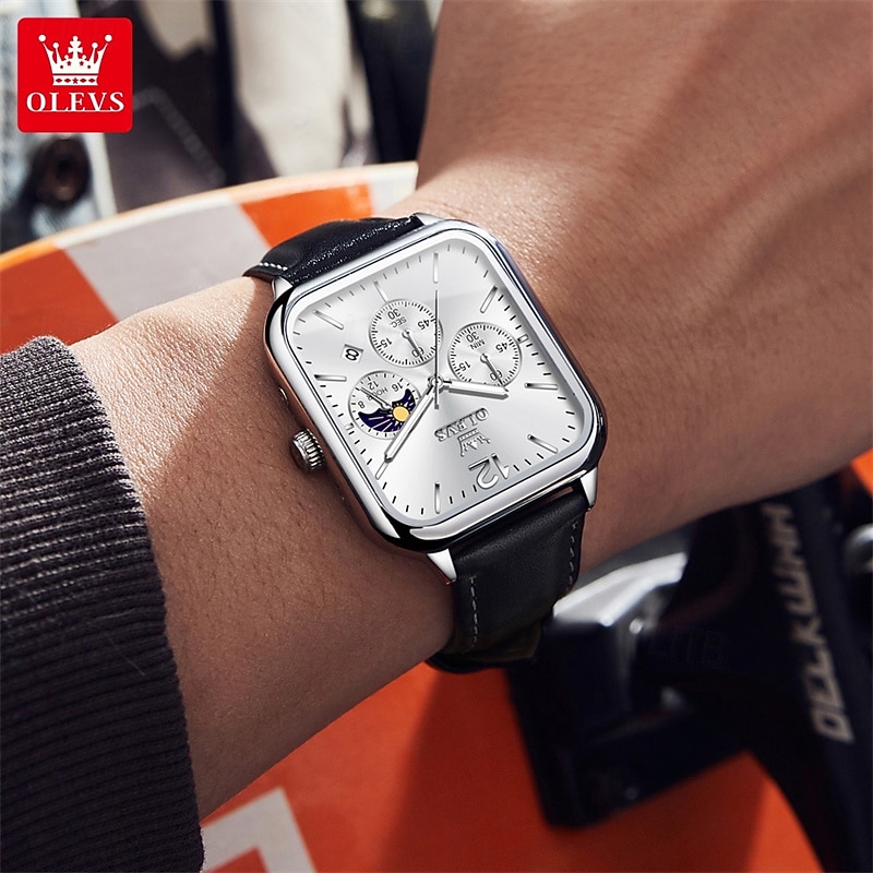 $19.99 - New Olevs Olevs Brand Fashion Trend Men'S Belt Watch Square Dial Luminous Moon Phase Calendar Multifunction Three Eyelids With Moon Phase Quartz Watch Casual Waterproof Sports Men'S Wristwatch 2025. Shop for cheap Quartz Watches online? Buy at lightinthebox.com on sale today!