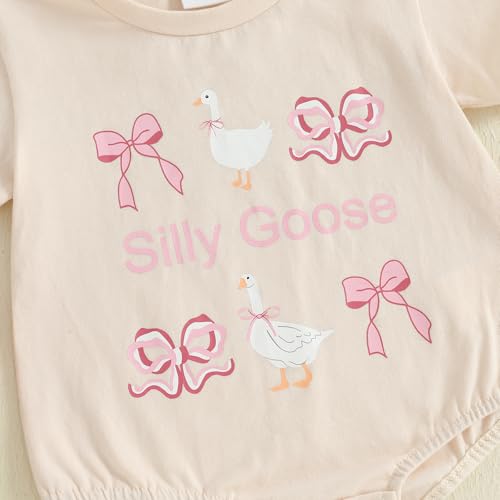 • FEATURE- Stylish infant baby girl summer bodysuit, round neck, silly goose and bow printed, crewneck short sleeve onesie, baby girl bubble clothes summer, oversized romper shirt baby girl, newborn girl romper summer bow clothes, loose fit summer baby girl bodysuits, farm clothes baby girl, country baby girl outfits