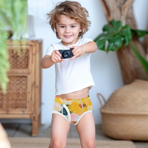 KLL Flowers Leaves White Pink Yellow Toddler Boys Cotton Athletic Underwear Cute Children Panties 6
