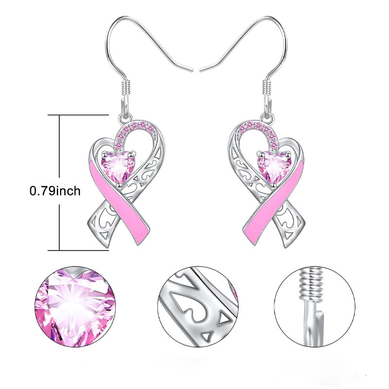 More information about Breast Cancer Awareness Earrings For Women, Pink Ribbon Heart Dangle Drop Earrings Breast Cancer Survivor Gift Support Christmas Thanksgiving Holiday Jewelry